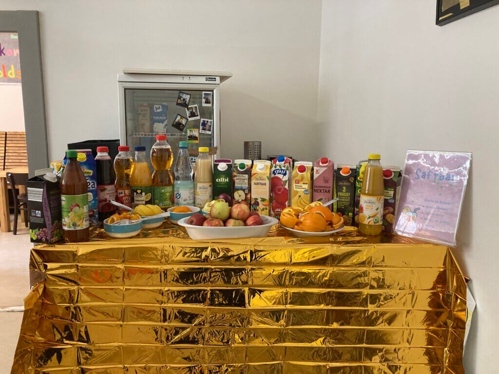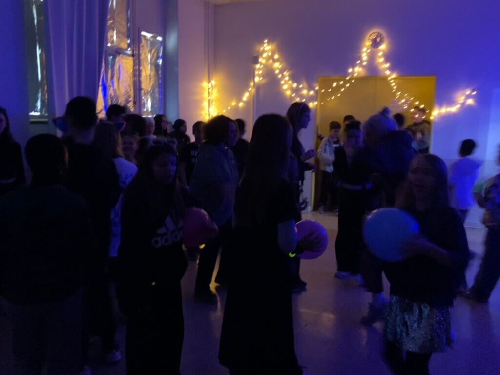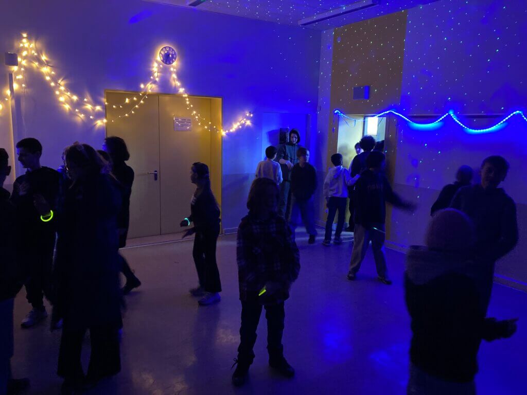 Dank der Unterstützung einer Lehrkraft aus der Mittelstufe sowie engagierter Schüler*innen der Schülerfirma bestand zudem die Möglichkeit, das benachbarte Café Goldstück zu besuchen. Dort konnten sich die Discogäste ausruhen, stärken, Fruchtmixgetränke genießen und miteinander ins Gespräch kommen.